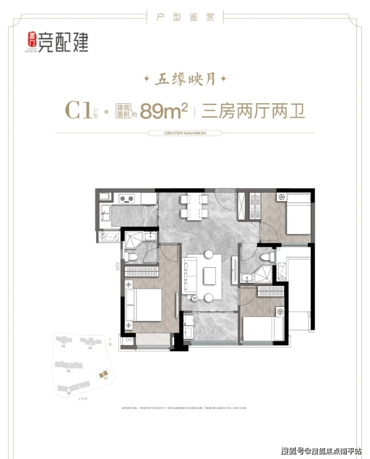 五缘映月竞配建房源仅68套,位于6号楼,产品是是89平的三房边套或中间套户型;该楼盘的小户型备受关注度较高。