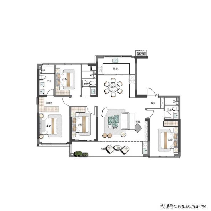 同时 大横厅的设计 , 不仅 提升了房屋南向的延展性,可以灵动改造为书房、或是亲子空间 等,且 家庭聚餐、朋友聚会、商务招待 ……都有足够的空间施展。