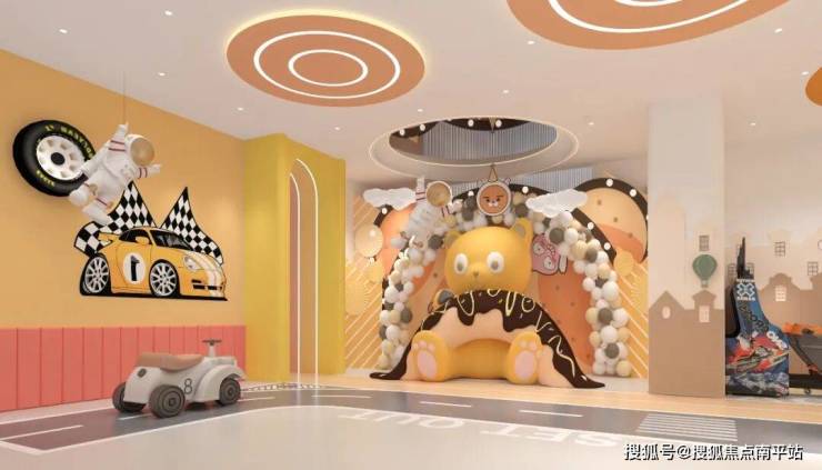 星级酒店级单元入户内的架空层,绿城 ·锦凤大观则 把它们设置成泛会所,当做业主的第二会客厅。这种公区是外挂的高附加值空间, 功能包含休闲品茗、运动健身、 首创约 360㎡社区内生型亲子游乐场 等,满足大人和小孩全龄段的不同需求。