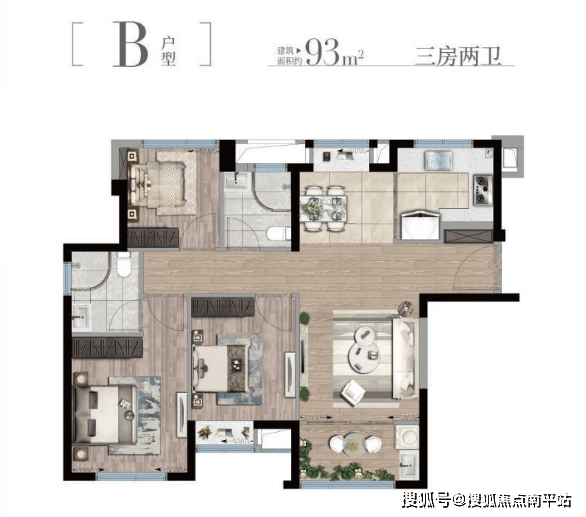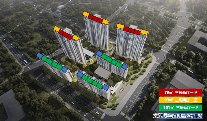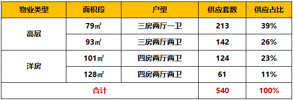 项目规划 3栋高层、3栋洋房,总户数540户。高层规划为79、93㎡三房产品,洋房规划为101-128㎡四房产品。