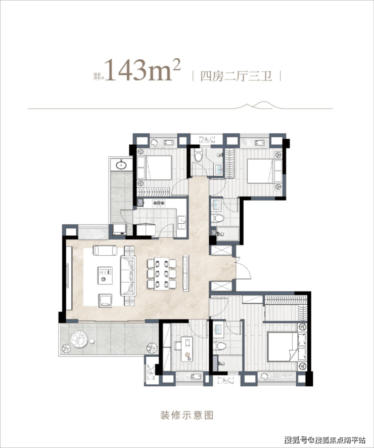 项目主推户型为建面约103-143㎡的3-4房,满足一家三口、三代同堂及二孩家庭等不同购房需求。