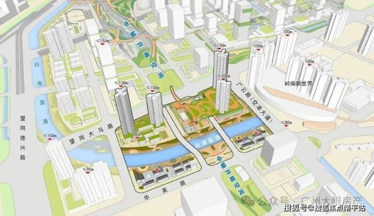 将采用“水岸共生”理念,以白海面涌为生态主轴,构建滨水慢行廊道。同时沿嘉禾望岗上盖设施打造景观化中轴公园,塑造片区创意活力。(非项目配建,以政府官方公示为准)