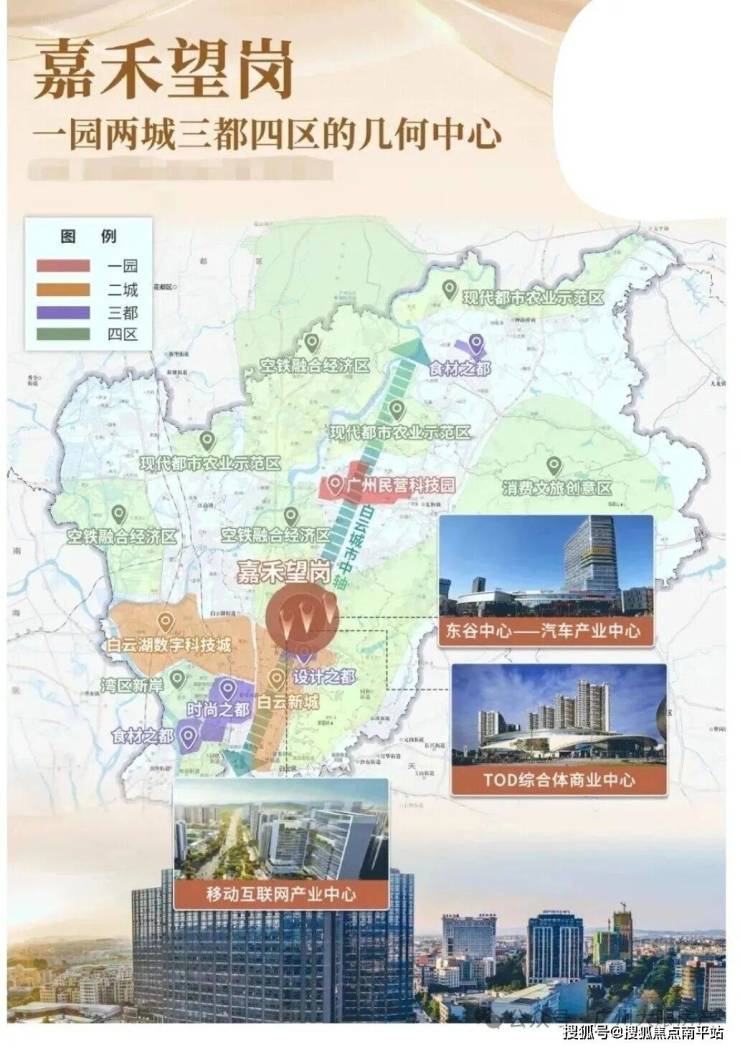 据2022年官方规划,嘉禾望岗定位为“白云新城嘉禾望岗商务核心区,产城融合的TOD综合开发示范区”。重点引入数字科技、智慧电商、智慧能源、智慧医药等产业,连结“广州设计之都·嘉禾望岗TOD白云智慧城”等高精尖产业发展势能,形成白云产业分布中心。这意味着,嘉禾望岗将不仅是TOD,同时赋予了产业中心的功能。