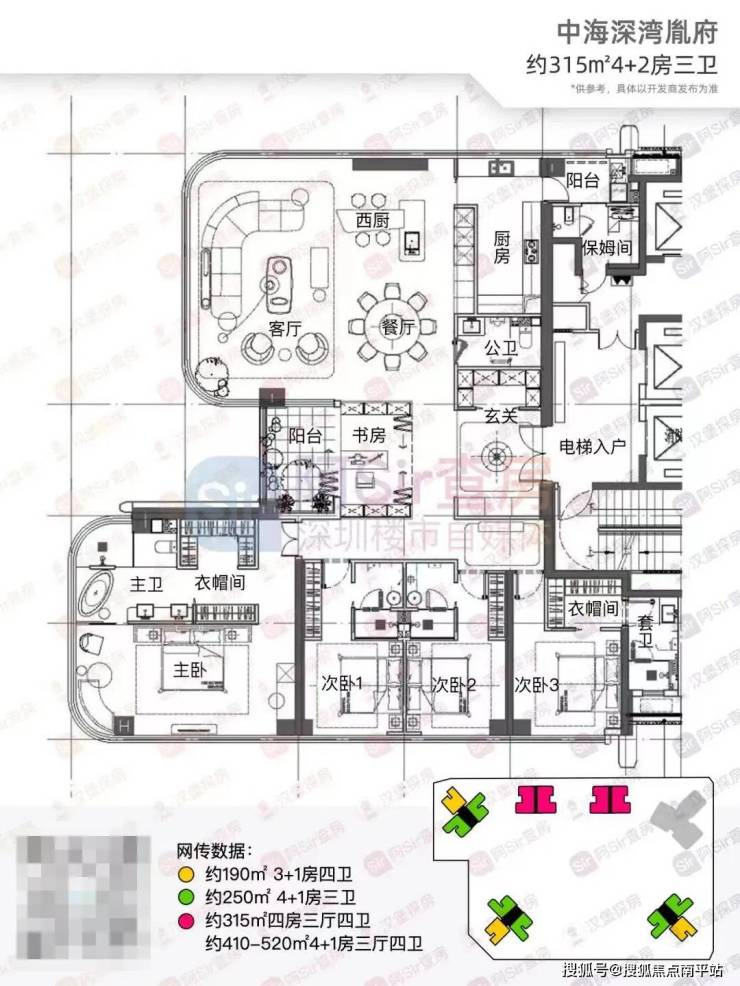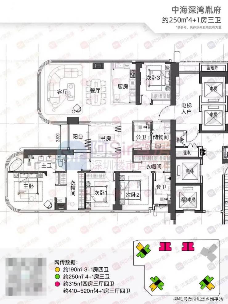 约315㎡4+2房三卫 138套 三梯两户(专梯专户)