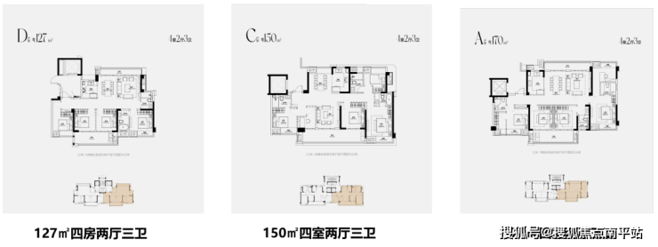 约15.5m大面宽、四开间朝南,舒适度佳;餐厨独立空间,尺度感佳;约8.8米南向宽景大阳台,采光通透性强。全屋三卫,双套间设计。