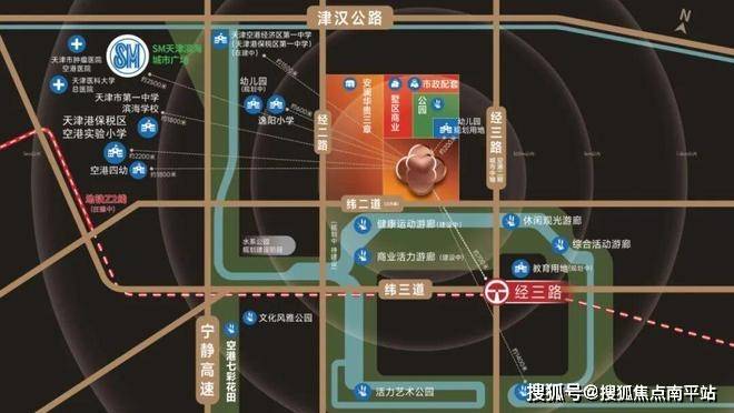 绿城·桂语安澜于此水岸墅区之中,1km生活圈内,南侧一街之隔的水系公园已进入完工倒计时,未来安澜业主将穿越水岸绿廊,尽享沉浸式的归家仪式感;逸阳空港小学、幼儿园(规划中),地铁Z2线(在建中)举步即达,教育与通勤需求一站满足。3km范围内,SM天津滨海城市广场、双三级医院、空港经济区第一中学等全维配套环伺,打造近享生态、教育、繁华的理想生活圈。