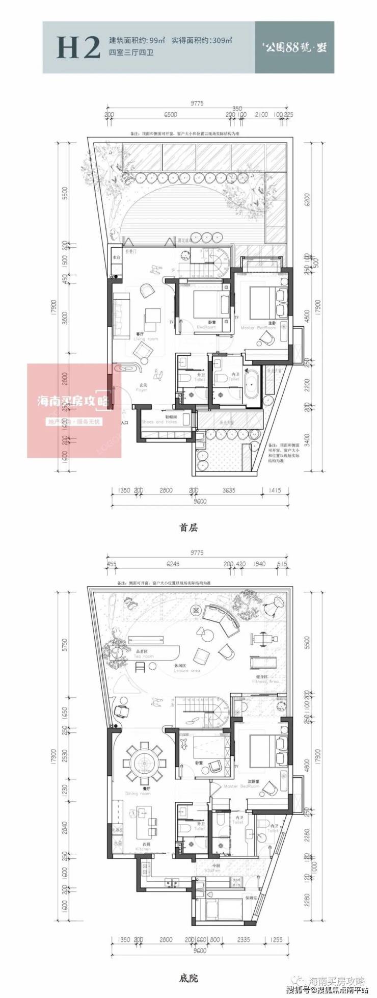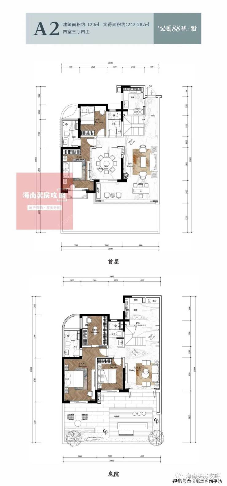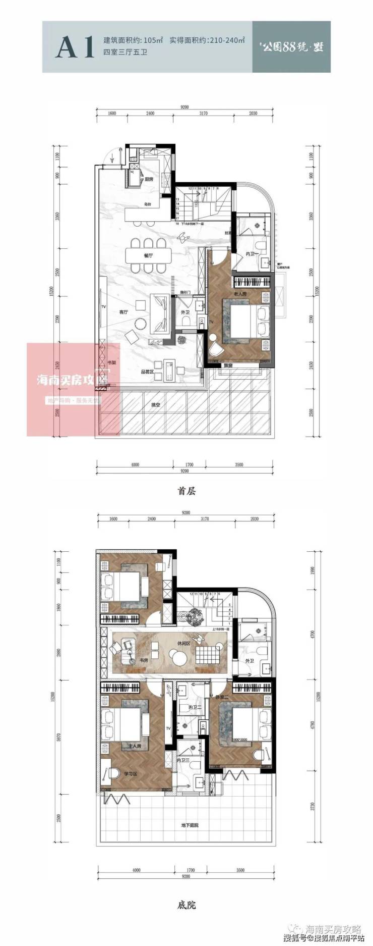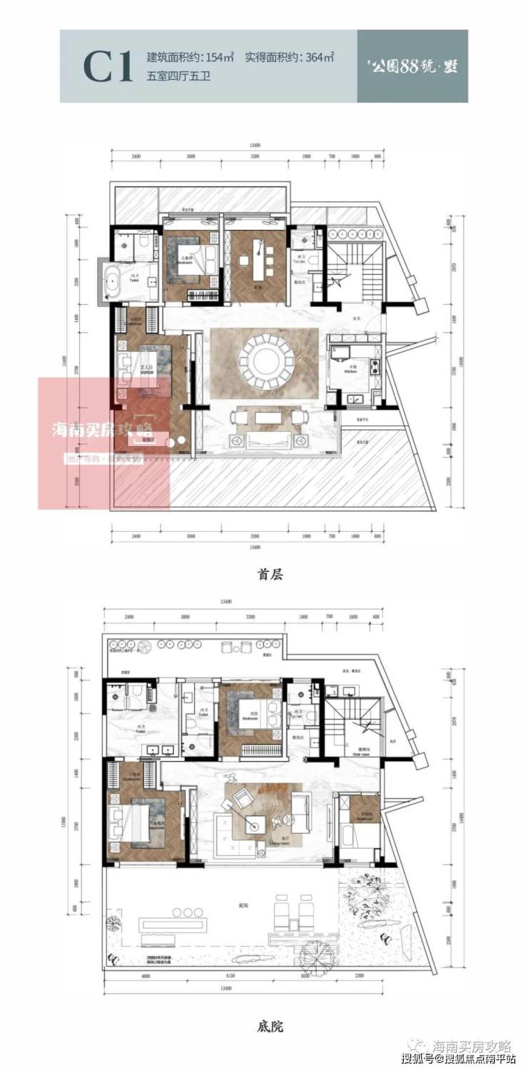 户型点评:不可多得的底院优质户型,功能空间完备,首层入户亦有景观,双庭院设计,庭院面积较大,多房多厅设置,根据需要可增加至七房。↓