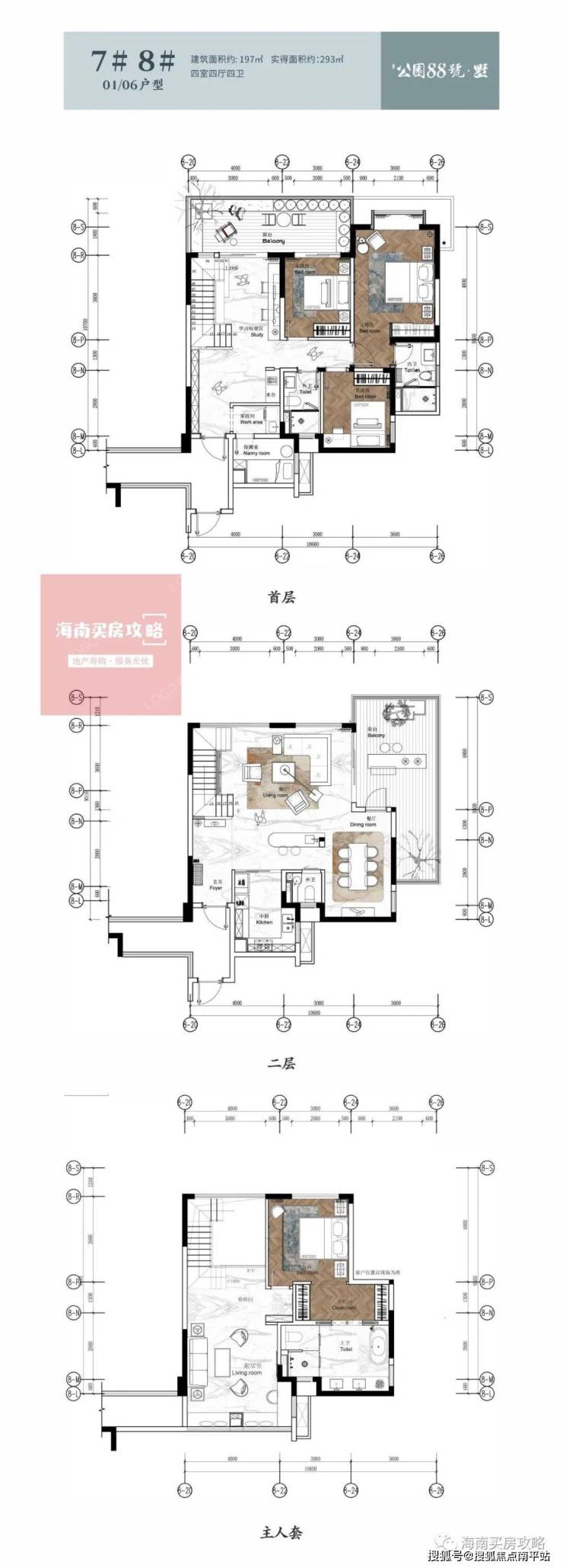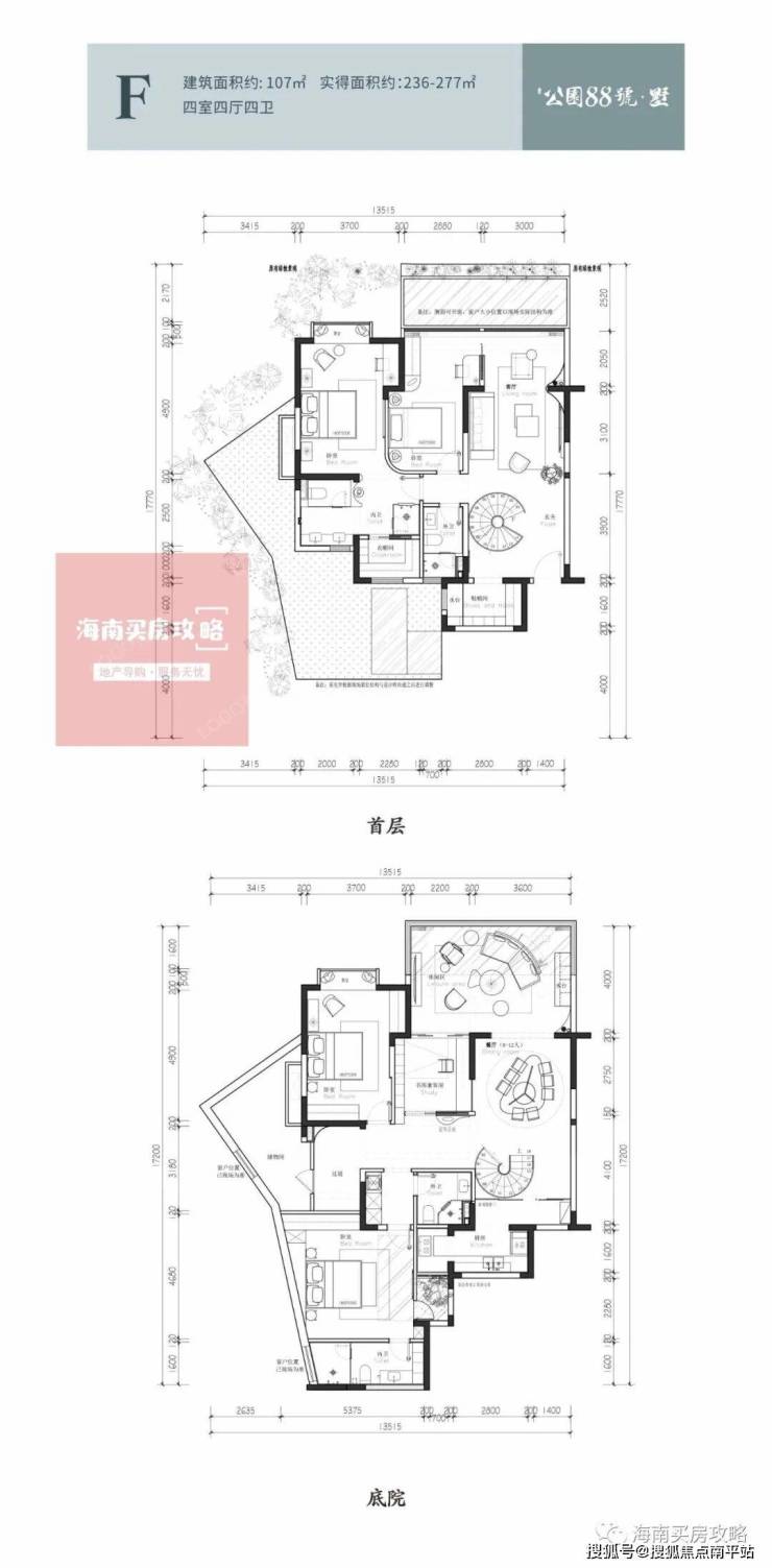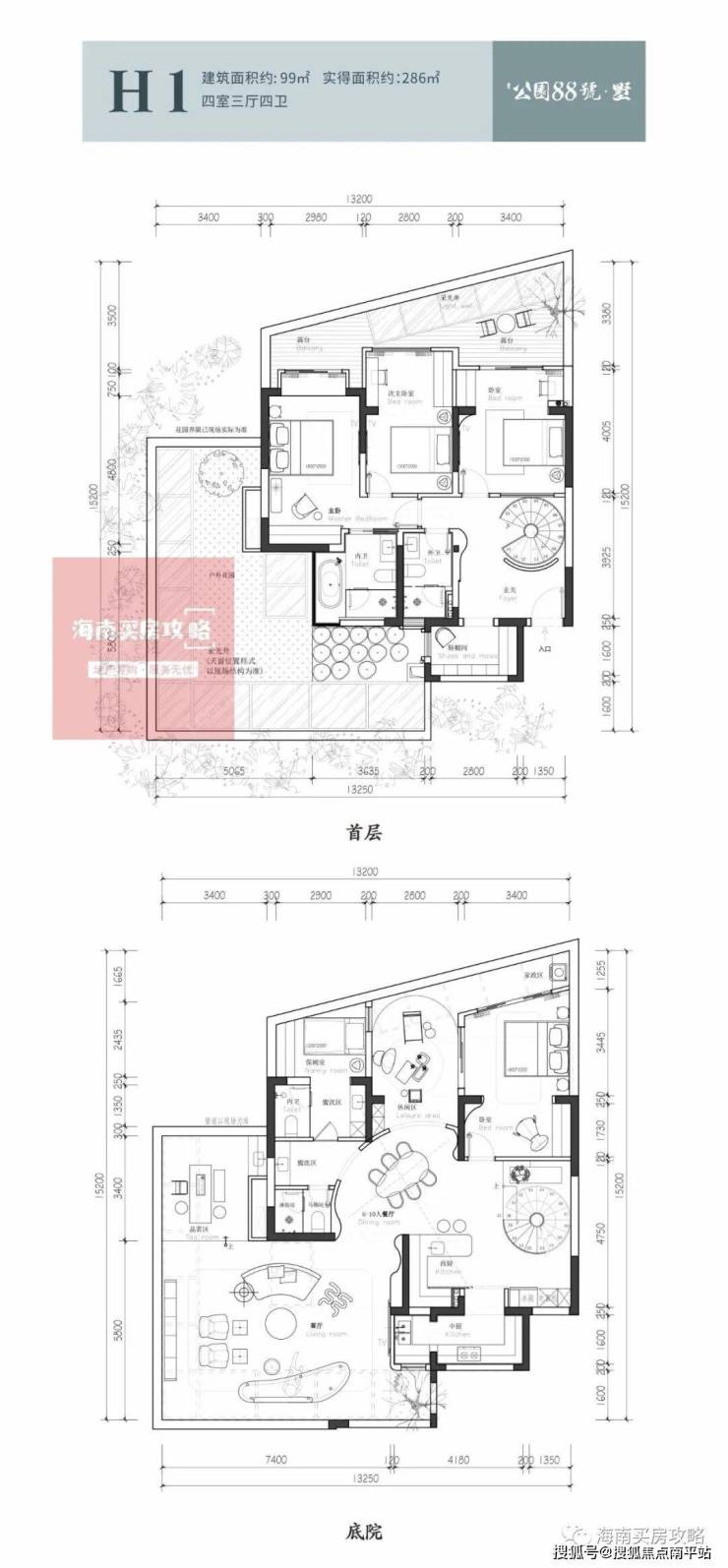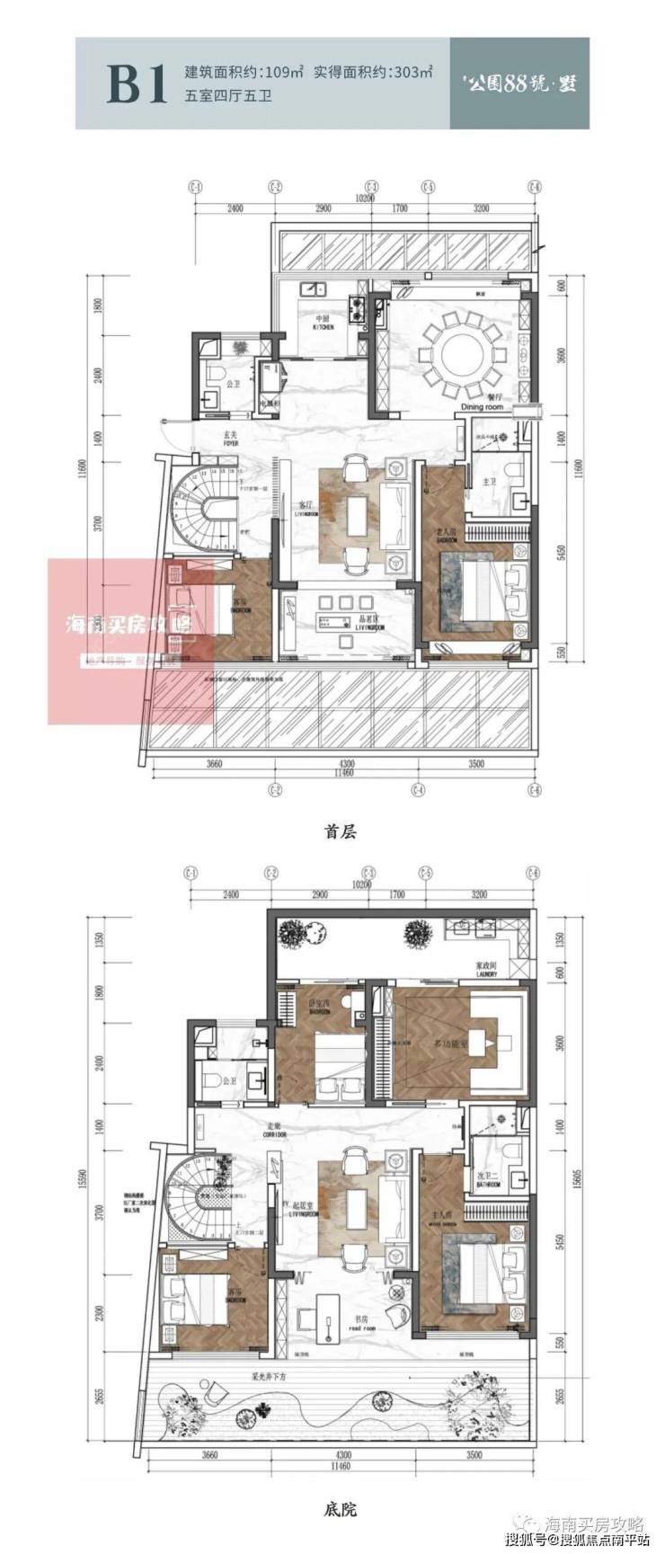 户型点评:不可多得的底院优质户型,功能空间完备,首层入户亦有景观,双庭院设计,庭院面积较大,多房多厅设置,根据需要可增加至七房。↓
