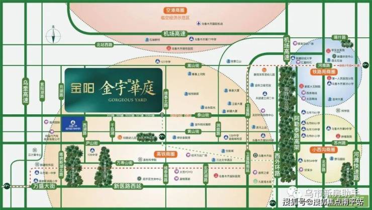 维泰路,卫星路、西外环、苏州路西延(庐山街),高铁黄金干道快速抵达各大区域。项目1公里内接驳高铁核心圈,近达机场。203,72,98,536A,5032,307,D005大站快车,7条公交线路,连接乌市各区。地铁2号线华山街站近距离项目,掌握横贯首府的东西南北“大动脉”。