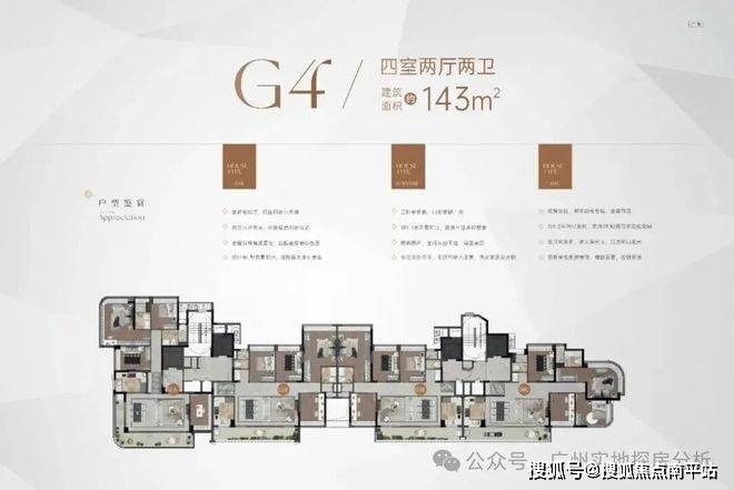 G4栋:17层,4梯4户,全部141平,客厅东北向,主卧西南向。