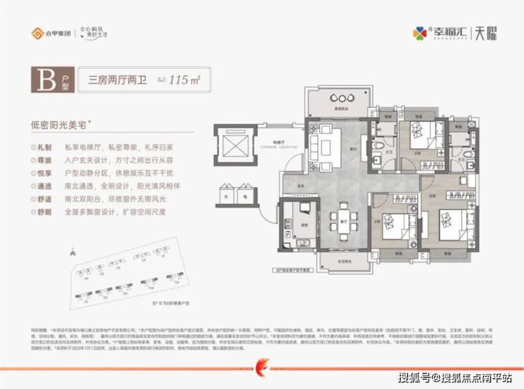 深谙现代人的居住需求,深刻洞悉用户居住喜好,推出精致刚需小户型,定制建面约103-115㎡低密阳光美宅。