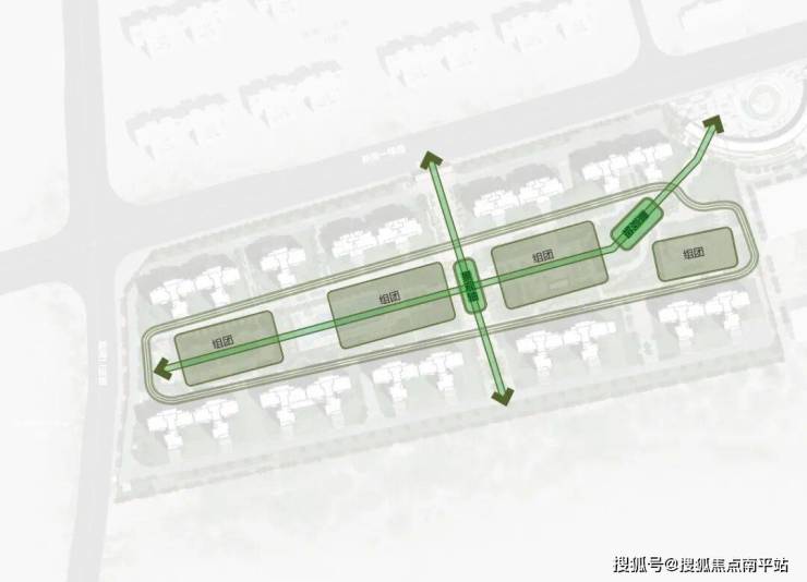 园区通过住宅楼栋围合形成东西向通廊庭院,打造“一环二轴多组团”的景观空间;“一环”是健康步道,连接各个景观区和休闲广场,每一次呼吸都是自然的馈赠;