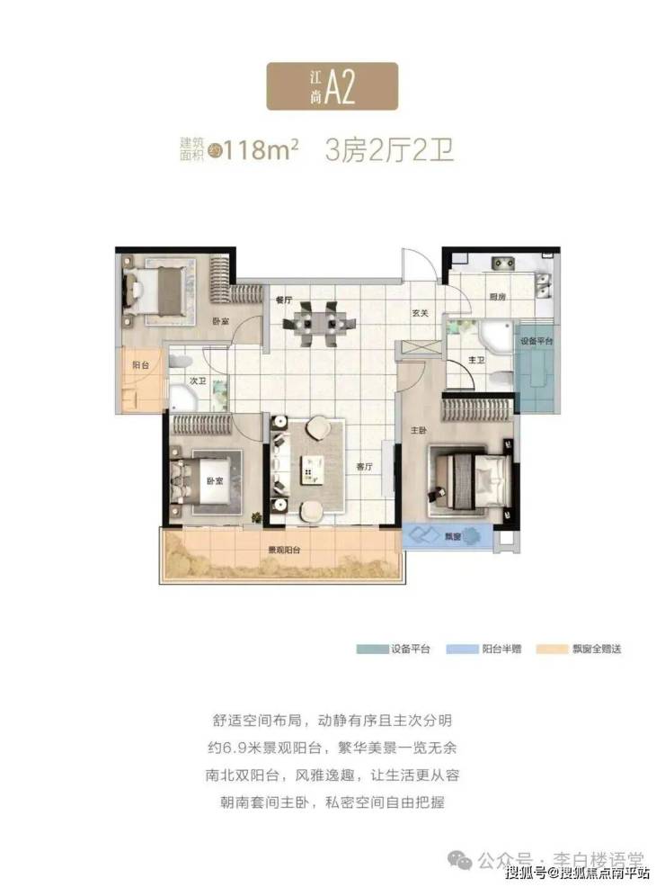 处在第二排、但仍有江景的西侧2号栋,则打造为 约188㎡大平层 ,面积段稍小,仍做到四房两厅三卫,南北双阳台,南向两个套房,主卧同样带超大衣帽间,居住舒适,门槛较第一排稍低。预算够不着第一排的,可直接瞄准ta。