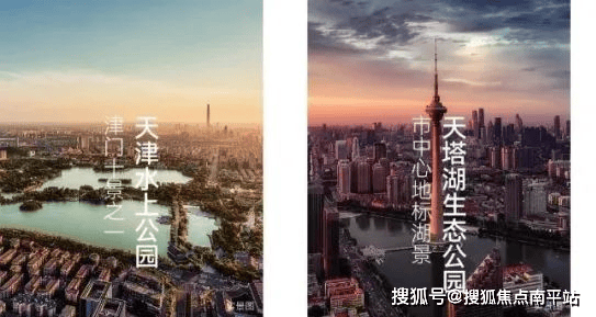 ·天塔湖⽣态公园-市中芯地标湖景:天津市区中芯地带最⼤的⼈⼯湖,约6000m²喷泉广场、约3000m²紫金广场与地标天塔共塑独特休闲地标。