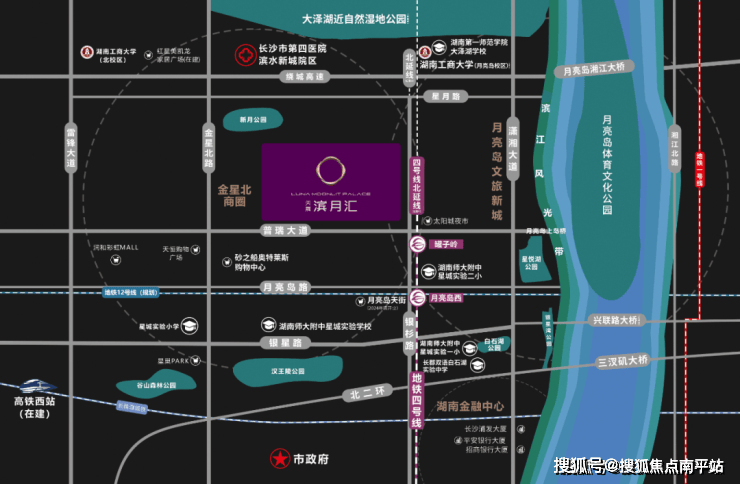 此外,这里还有湖南工商大学新校区、长沙四医院、工人文化宫、长沙大舞台等生活、娱乐、医疗配套,与滨月汇仅一两个地铁站距离,举步即享。