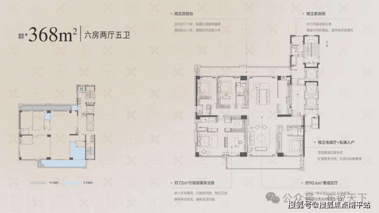 旺德府万象时代368㎡家族大宅的户型设计,更是为多代同堂的BOSS家庭定制:6室2厅5卫的多套房设计,让老人、孩子都有私密空间;约90.6㎡的奢适巨厅,能容纳家族聚会或商务小型宴请;约 72㎡的行政主卧套房,独立卫浴、步入式衣帽间、观景阳台一应俱全,给BOSS足够的私密与舒适。