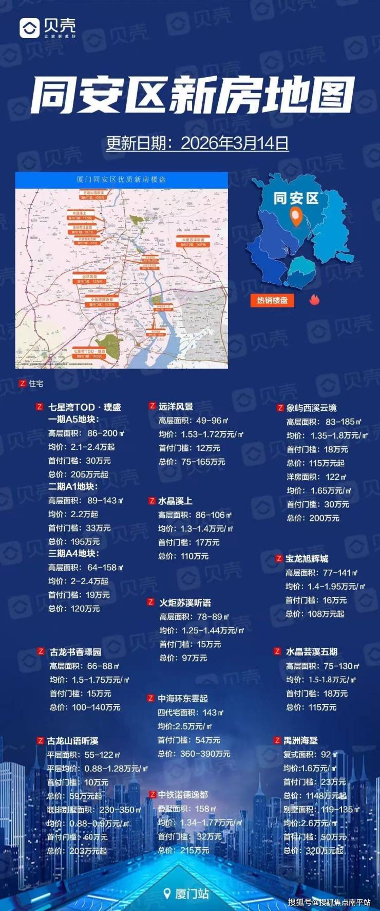 厦门同安区新盘地图汇总(附各盘面积段以及最低首付)