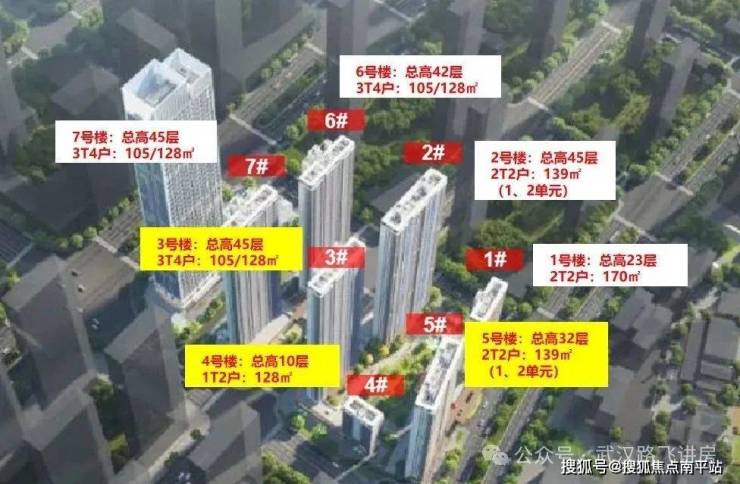 项目规划为准四代,各楼栋户型分布、梯户比等相关资料都已对外,其中有4栋楼都是42-45层超高层。首推的3号楼为45层、1个单元、3梯4户,建面约105、128平;4号楼10层、1个单元、1梯2户、建面约128平;5号楼为32层、2个单元、2梯2户,建面约139平。