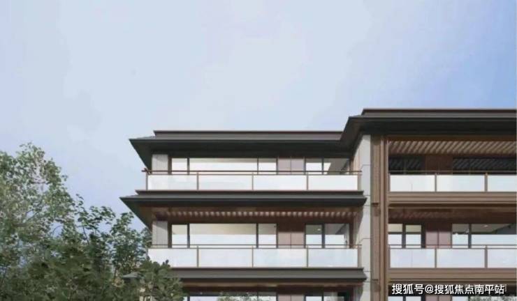 南向开敞阳台首开板块先例,玻璃与铝板两种材质的应用,将通透灵动的光幕线条与金属光泽完美融合。叠拼的阳台增加了传统建筑中勾栏构件与竖向立杆,超大窗墙比叠加浓厚的东方韵味,整个建筑既隽永又耐人寻味。