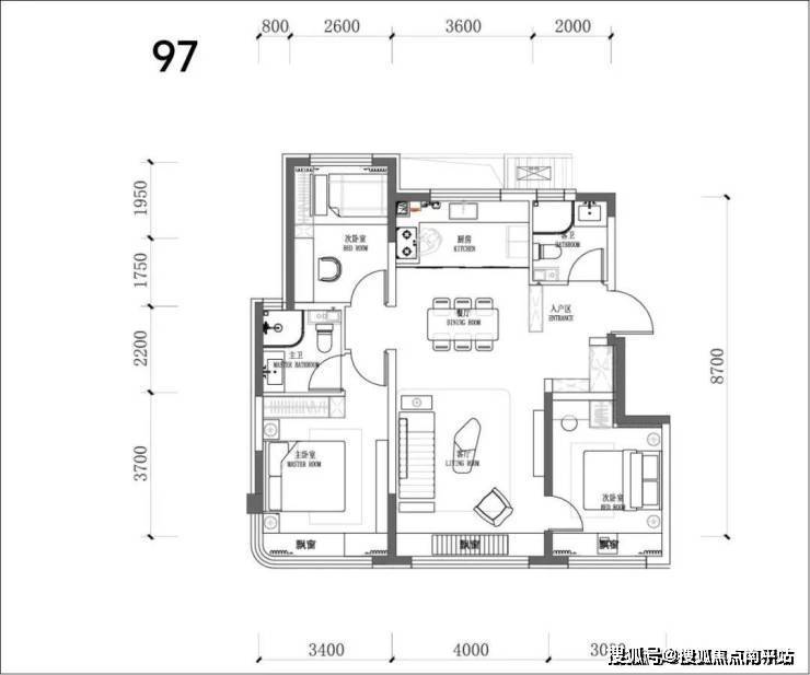该楼盘一共有四款户型,面积为97、115、128、139平米。