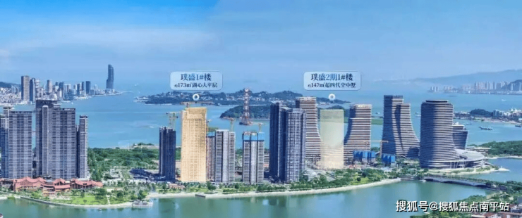 璞盛1#央座作为45层的超高层建筑,它精准落位蔡尖尾山-区政府-海沧湖-海沧湾的城市中轴C位,直面海沧湖头排景致。