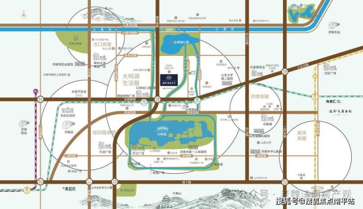 2、商业:40万方城市综合体项目建设中,自持写字楼商业,坐享大明湖/北园/泉城路/经四路/洪楼五大商圈,20分钟到达泉城路
