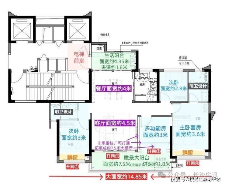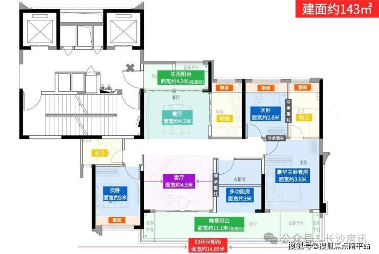 ★143㎡ 珺·颂 四房两厅两卫(A2栋)·独梯入户,私属归家体验·南北双阳台通透格局,品味明亮肆意人生,自在清风常伴·LDKB 洄游设计,精研究间尺度,舒放自在生活·主卧套房设计,尊贵感与私密感尽显·四面宽朝南,约 13.5㎡超大景观阳台,享全生态园景艺术视野