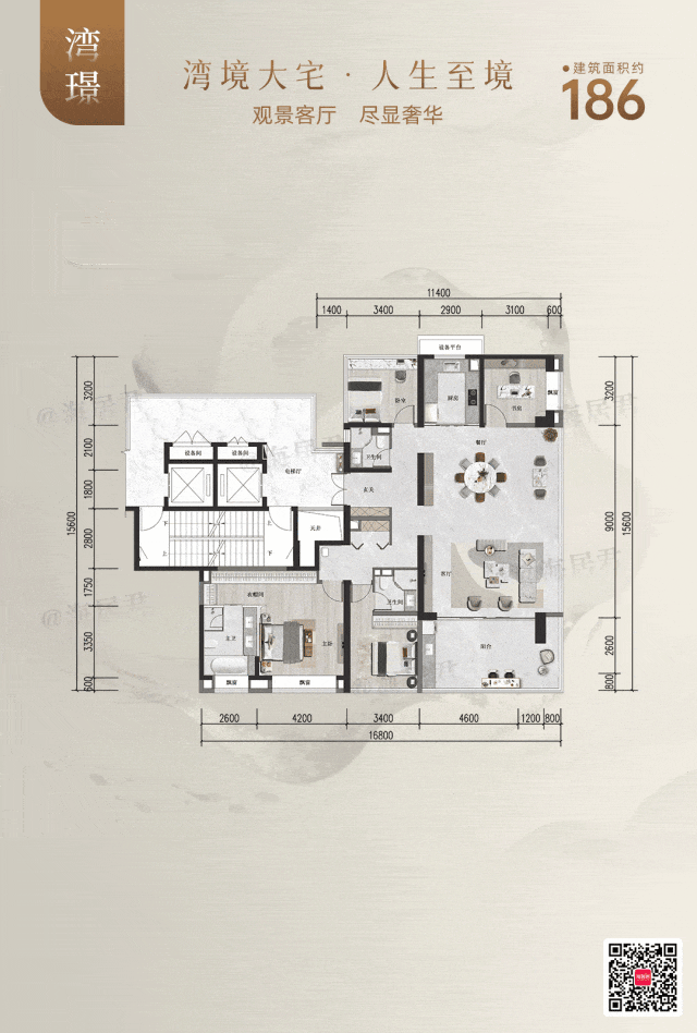 186㎡以全场景格局打造家族式湾境大宅,成就真正可传承的生活排场与居住质感。