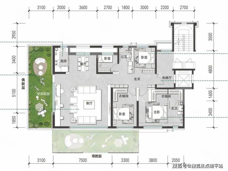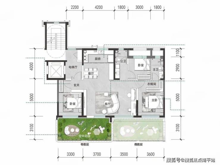 户户标配 约 22㎡空中花园 , 奇偶错层设计 ,挑高约 6.3 米,50% 种植区 + 50% 外摆区,覆土深度 60cm,可种花、种菜、搭茶台,私享一方空中秘境。