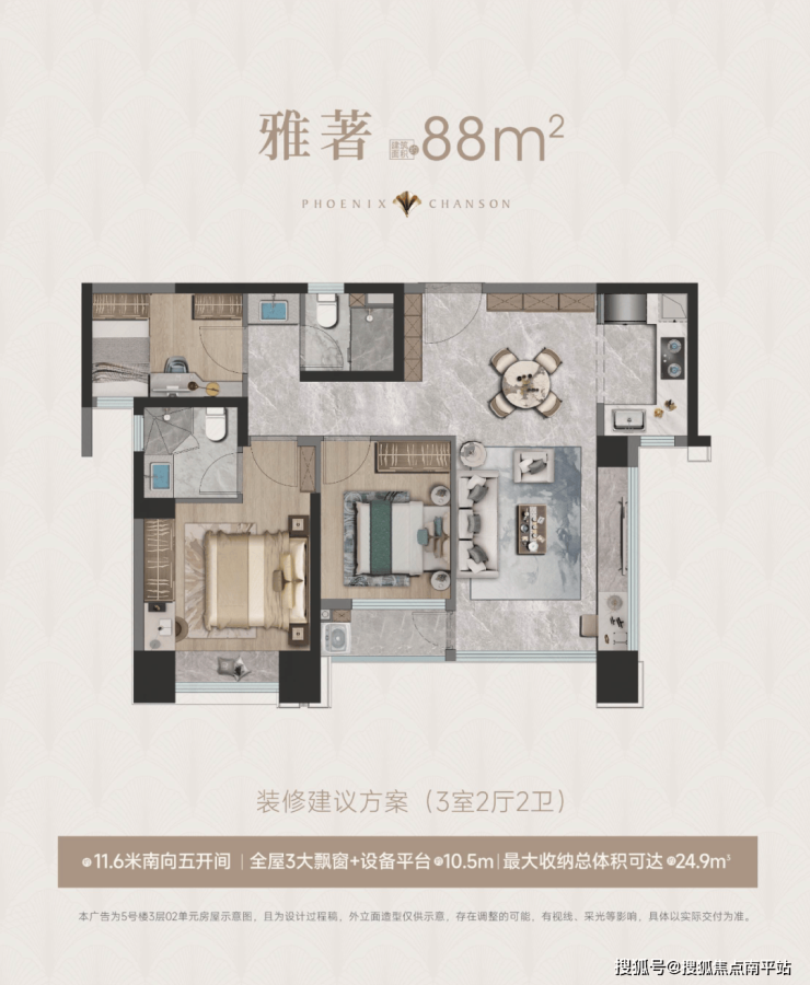 高层产品:88平3房2卫,260套;99平3房2卫,260套