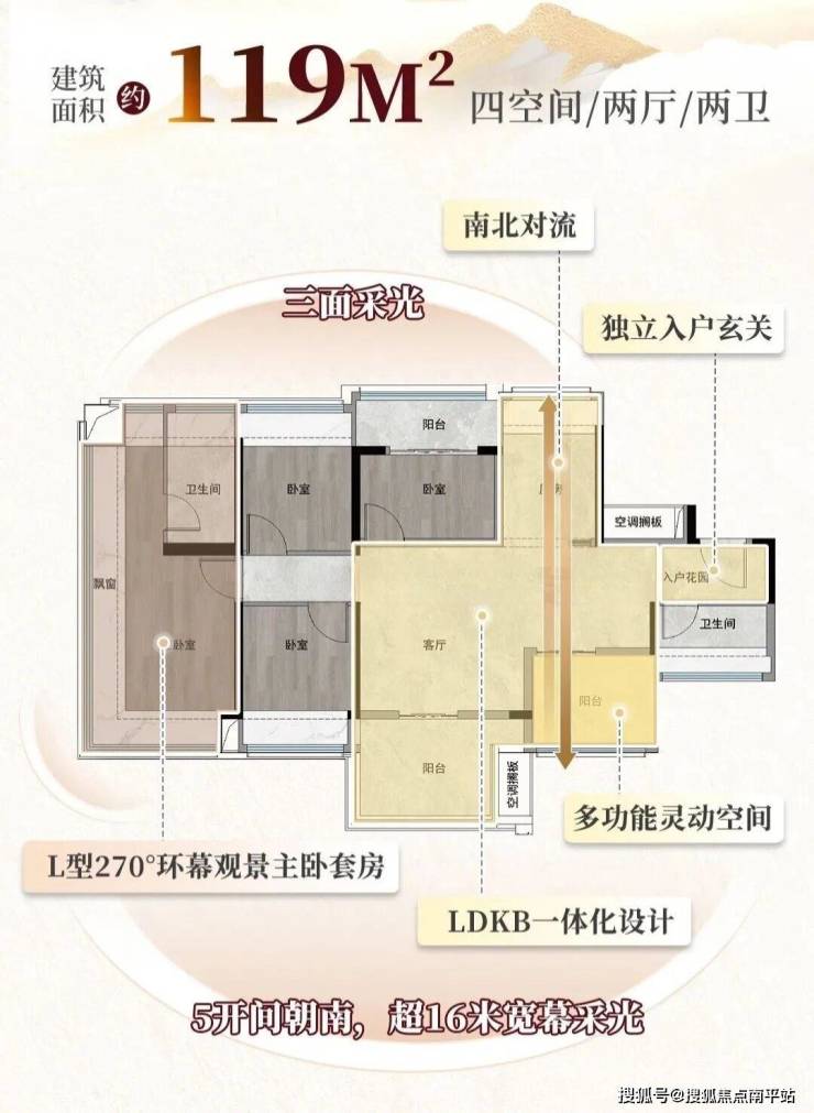 建面约106㎡和119㎡的户型也同样拥有多开间南向、L型飘窗、宽幕采光等等,不同需求的买家可以各取所需。