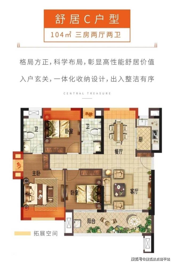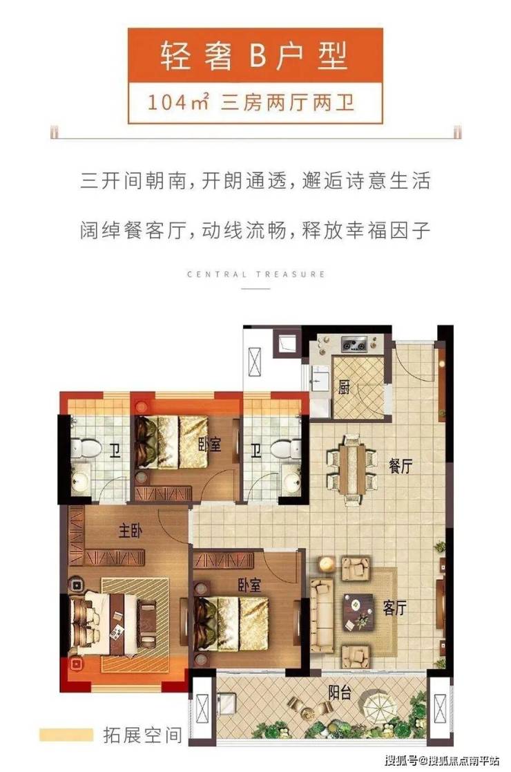 ◆户型最大的亮点是“7.7米宽大客厅”,满足改善性体验。