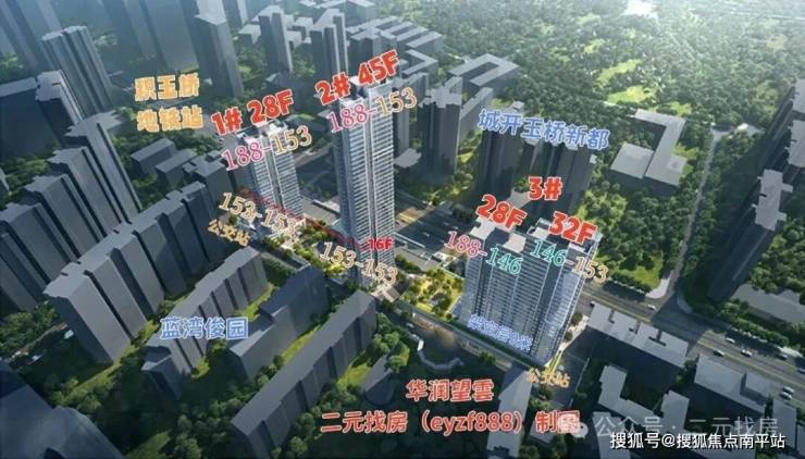 项目一共3栋楼,1号楼28F,2号楼45F,3号楼两个单元,一个28F,一个32F。项目户型为146/153/188㎡。
