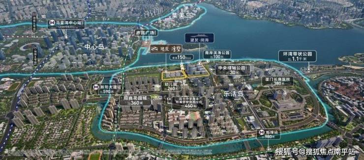 配套:360米招商花园城、450米双十庚西分校、380米三甲长庚医院、100米南岸滨海公园,形成“商轨学园医”闭环。