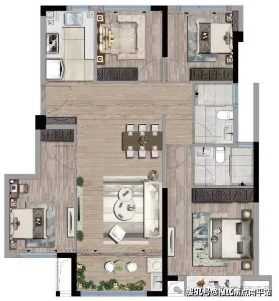 约79-128㎡奢适3-4房产品,全明格局,高空间利用率。配置全屋中央空调、方太、科勒等一线大牌,考究品质入住即享。