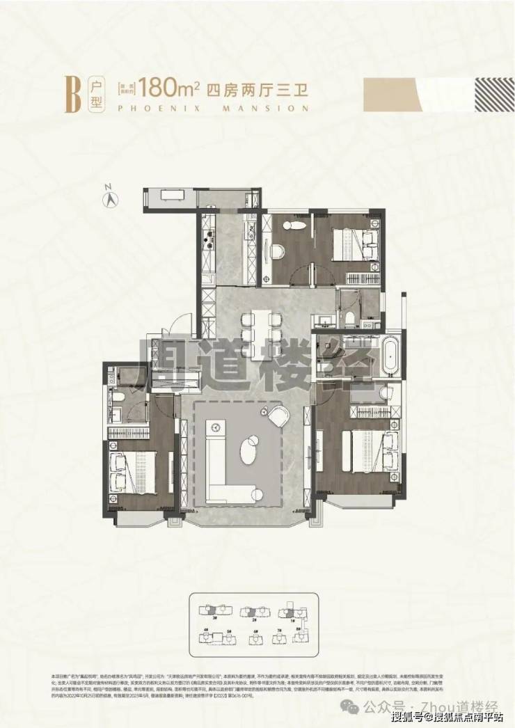 【项目户型】:项目主力户型为150㎡、180㎡、215㎡三居到四居