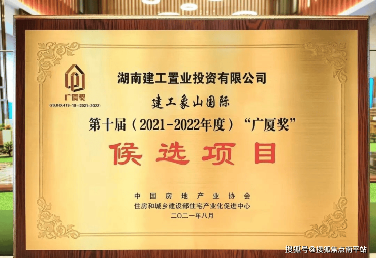传承湖南建设投资集团“一流 、创新、 诚正 、奉献”精神,打造集团首个产业升级标杆之作,建投·象山国际将秉承“建美丽城市、筑美好生活”使命,争创住宅类鲁班奖,打造高品质标杆。2023年12月10日,建投·象山国际“一期A5、A7、A9栋及地下室工程”荣获《2022-2023年度第二批中国建设工程鲁班奖(国家优质工程)》,是全国七个荣获鲁班奖的住宅项目之一,是湖南省唯一荣获鲁班奖的住宅项目。2021年7月30日,建投·象山国际成功入选(2021-2022年度)“广厦奖”第二批候选项目,也是湖南唯一入选该批候选名单的项目。日前,更入选湖南省住建厅《湖南省首批住宅物业住房品质楼盘创建名单》,省内仅7家入选。继受到市场追捧后,再获行业最高荣誉,政府权威认可。