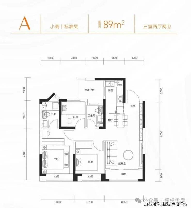 🔥1号楼中户89㎡:250-270万 开间3.55