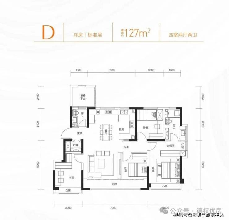 约13.5米巨幕面宽,南向四开间迭代升级,酒店式主卧套房,独立卫浴、步入式衣帽间