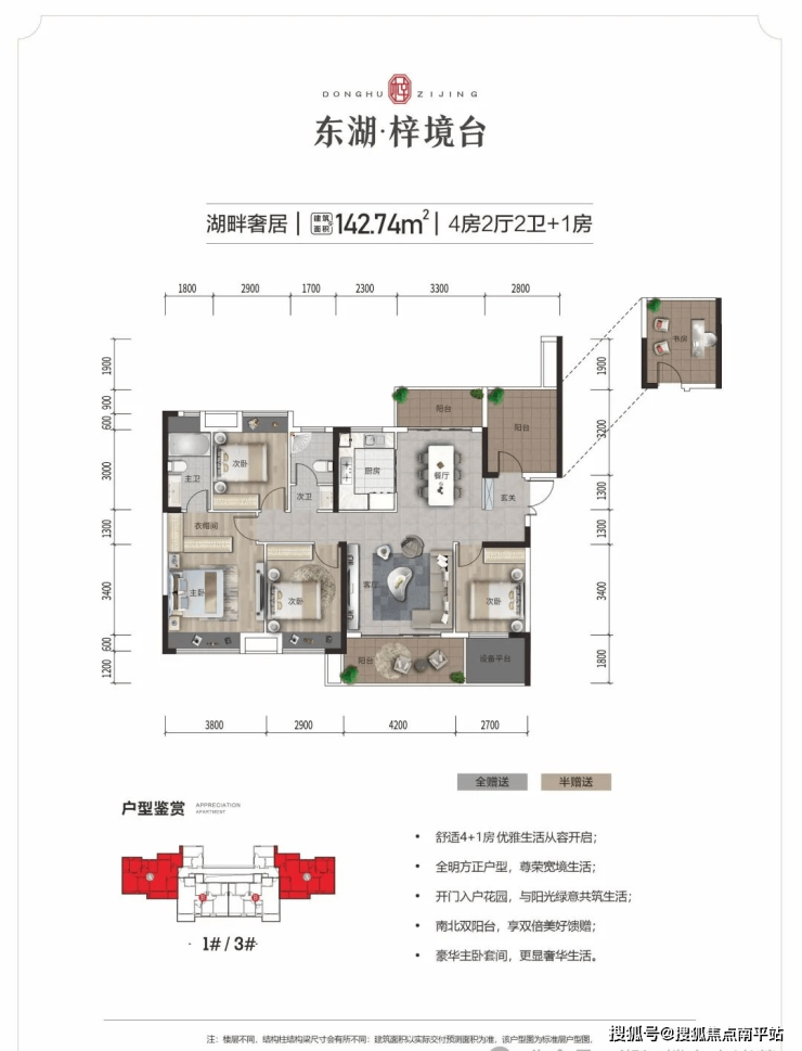【梯户比】:两梯四户(1#3#)、两梯两户(2#)