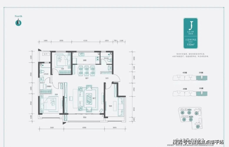 5号楼132㎡三室两厅两卫,宽庭落地窗开间6米,一梯两户9层到顶