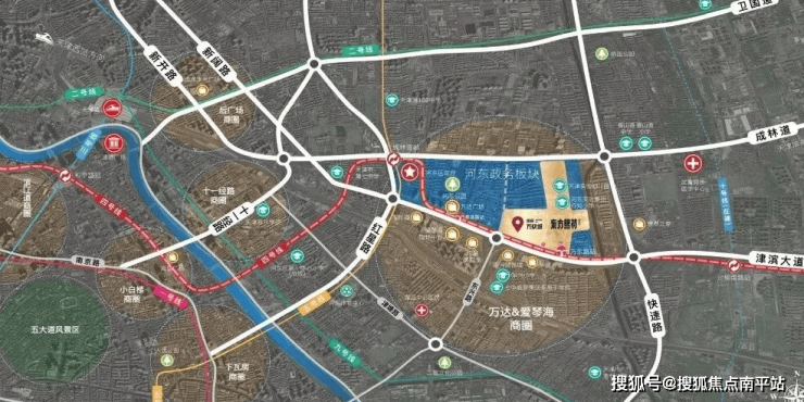 交通路网:“三横三纵”的立体式公路交通网络,三横是指卫国道、成林道、津滨大道;三纵是指十一经路(内环线)、红星路(中环线)、昆仑路(东南快速线)。