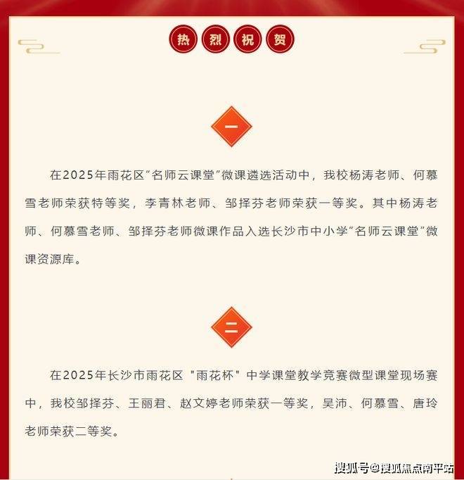 比如今年,多位一中东山名师在雨花区“名师云课堂”微课遴选活动、长沙市雨花区“雨花杯”中学课堂教学竞赛微型课堂现场赛中荣获多项一等奖、二等奖荣耀,以及雨花区教育科研微课题的申报中也取得了不俗的表现。