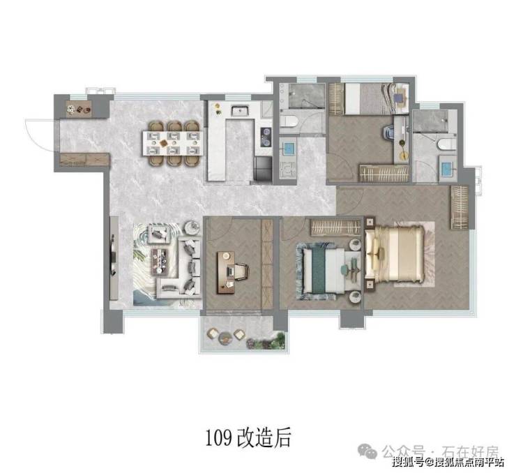 • 99㎡3+1房两卫(边套):首改家庭的理想之选,南北通透设计搭配四面采光,空气对流无死角。270°全景主卧与餐厅,拓宽观景视野的同时让采光更均匀,灵动的“3+1”空间可按需改造为书房、儿童房,得房率约92%,兼顾实用性与成长性。