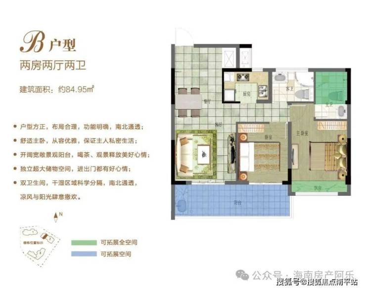 B户型:81.73㎡-84.91㎡两房两厅两卫