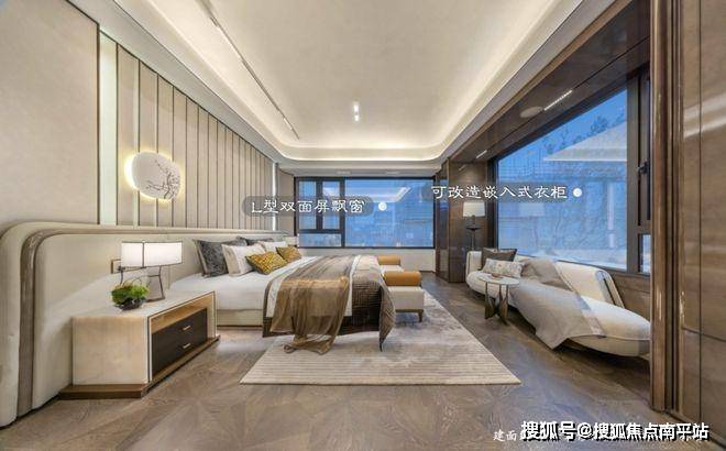 酒店式主卧套房小家化,重构奢宅标尺,L型双面屏飘窗,纵享7m环幕风光,同时还可装修设计为嵌入式衣柜,扩大使用空间。