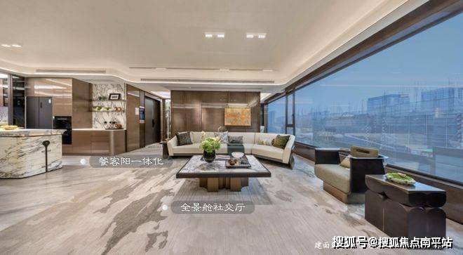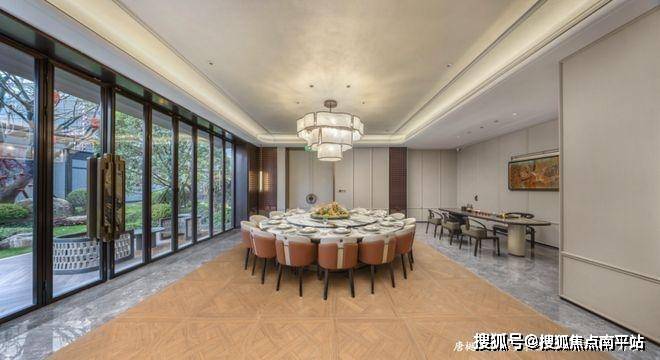 约17.8m南向四开间,让光线与风景入室。宽阔餐厅可放置圆桌、岛台,约50m²餐客厅贯通,打造“全景舱社交厅”,让家族聚会大可尽兴。
