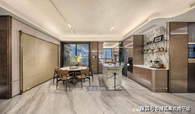 约4.5m超阔餐厨空间,后期可拓展岛台、餐边柜。餐客厨阳可贯通式设计,可改造成无界方厅,共飨欢愉食光,悦鉴高阶烟火。