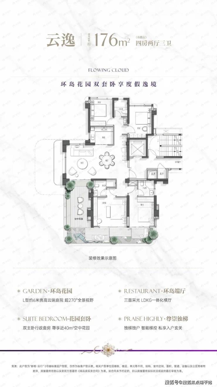 183/188㎡四房:大面宽端厅,270° 观景,庭院更大,适配三代同堂。
