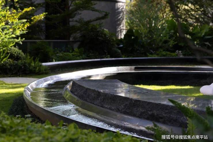 镜面水庭像一片被定格的海洋,完整倒映流云与建筑,营造出静谧而灵动的双重时空。叠水以柔和落差打破宁静,水声化作轻柔背景音,如海浪不停的低语。